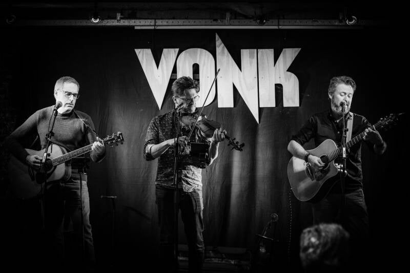 Gewapend met gitaren, mondharmonica, mandoline, ukelele, viool brengt dit trio